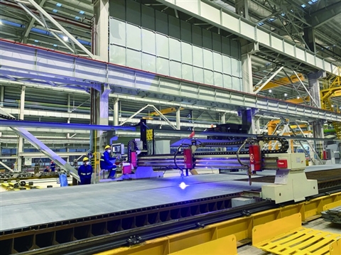 记者近日在浙江交工装备工程有限公司看到,数控等离子切割机正在切割钢板。据了解,浙江交工装备工程有限公司计划打造钢板梁、钢箱梁、钢桁梁及特种设备等多条专业高智能标准化生产流水线,首条生产线投产以来,每月产量达2000吨。