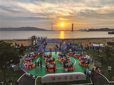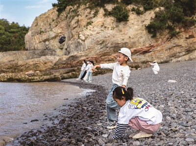 坐落于东海百里文廊岑港段册子岛的月亮湾沙滩同样令人流连忘返,不仅坐拥山海美景,还能领略西堠门大桥的雄姿。该沙滩是被山海环抱的“月牙秘境”——沙滩如弯月镶嵌海岸,海边草地与房车营地构建成露营天堂。