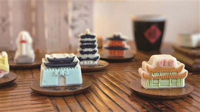 9月24日下午,记者走进紧挨着奎光阁的林沐烘焙店,只见主理人正在制作定海古城文创月饼。在包馅、压模、脱模等步骤后,一个个融入定海古城元素、晶莹剔透的冰皮月饼逐渐摆满了桌面。一眼看去,奎光阁、文笔峰、东城门、登科桥、钟书楼、状元阁、砚池、墨井造型的月饼栩栩如生,宛如微缩景观“搬”进了“定海礼物”礼盒中,不仅色彩逼真,造型也活灵活现,为消费者开启了一段可品尝的定海古城旅行记忆。