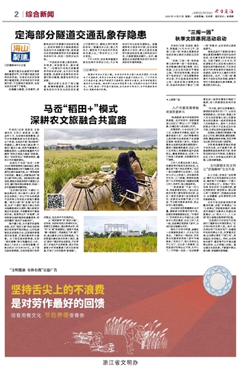 从“稻田咖啡”到“稻田火锅”,近年来,马岙依托悠久的稻作文化,深耕农文旅融合,通过跨界合作,将“吃”与“景”深度绑定。“游客不再是‘看一眼就走’,而是能坐下来、慢下来,真正感受乡村生活的温度。”马岙街道办事处相关负责人表示,通过“稻田+”模式的业态联动,不仅带动了本地农产品的销售,更为市民游客乡村体验搭建了多元化的场景,打造了乡村共富的“新稻路”。