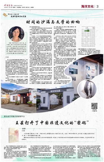 10年前,一个以三毛命名的奖项在定海诞生,将三毛的家人与这片土地紧密地联系在了一起。他们一次次到来,目睹小岛的变化,目睹一拨又一拨作家、文学爱好者、游客来到这里,表达对三毛的怀念——恍如“风吹来的沙”,汇聚成那枚“时间沙漏”中金色的沙粒。