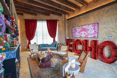 与正门打卡区一样“出片”的,还有位于建筑另一端的三毛文学会客厅也于1月10日开放。异域风情的装饰,红色“ECHO”字样的装饰架及墙面印有三毛语录的装饰画让整个空间充斥着三毛的情怀气息,沙发、座椅、毛毯、壁炉等让会客厅多了一丝惬意和温暖,其中一面墙上还有各类毛毡文创品,完美地融入整体空间,通过这些小物件让游客带走一些关于“雨季再来”的回忆。