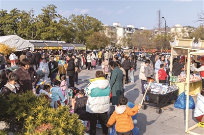 来定海古城“打卡”慢生活的市民也带火了这里的烟火年味。鲜牛火锅店、槐花井非遗食肆、萤火市集等人气十足。“春节这几天生意还是不错的,特别是中午十二点和晚上六点,都要取号排队。”其中一家餐饮店铺的负责人如是说。