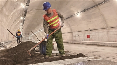 在古德岭隧道内,10余名施工人员正忙着进行内墙腻子粉刷、非机动车道铺装等收尾工作。“目前我们以每天80多米的进度推进腻子粉刷施工,后续还要进行两道涂料粉刷的工序,计划在目前一个班组人员的基础上,再增加一半人手,确保在半个月内能完成隧道内部装饰工作。”该工程项目经理黄洪保说。