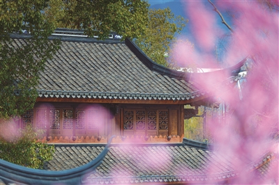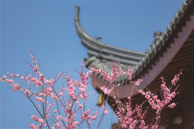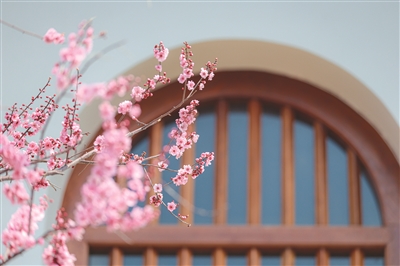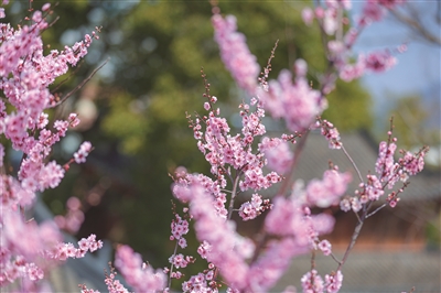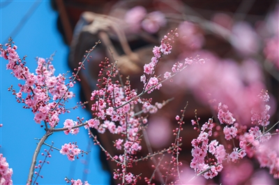 | 古檐映梅,粉蕊缀枝迎春 |