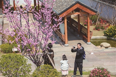 连日晴好,定海古城春意盎然,美人梅迎着暖阳次第绽放,花枝绰约、粉艳动人。花瓣缀满枝头,一朵朵、一簇簇地开得清雅又动人。