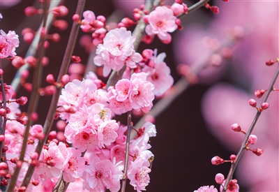 | 粉梅绽枝,春色满园 |