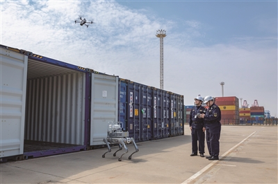 目前,四足机器人加无人机集装箱查验模式的箱号识别准确率已超90%,查验时间由原先的1小时压缩至20分钟内。