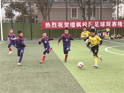 漫步檀枫小学教育集团檀枫校区的绿茵场,常能看到足球小将们在场上肆意奔跑、传球射门,呐喊声、欢呼声此起彼伏。该校构建的1—6年级足球运动分阶段培养体系,从兴趣培养到技能训练再到竞技比赛,形成层层递进的育人模式。