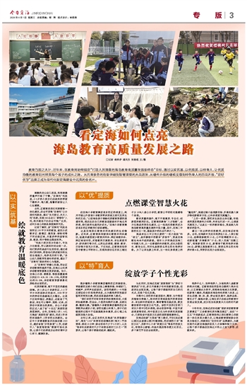 培养什么人、怎样培养人、为谁培养人是教育的根本问题。区教育局始终坚持立德树人根本任务,以五育融合为抓手,深挖海岛地域文化资源,创新育人载体,构建具有海岛特色的育人体系,让学生在德、智、体、美、劳全面发展中,涵养品格、增长才干、锤炼本领,让每位学子在适合的教育中实现全面发展,成为担当民族复兴大任的时代新人。