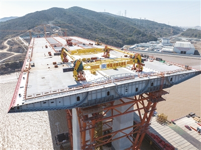 在西堠门公铁两用大桥项目建设现场高空作业平台上,数十名建设者分工协作、默契配合,有条不紊地开展桥面上部结构施工。地面与空中作业区里,塔吊、运输车等各类机械设备往来穿梭。“年前5号主塔墩已顺利封顶目前我们正按计划全力推进桥梁上部结构施工。”中铁大桥局甬舟铁路项目西堠门公铁两用大桥册子工区负责人王胜文说。