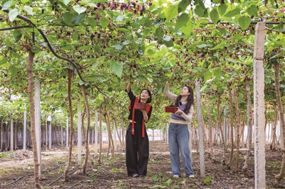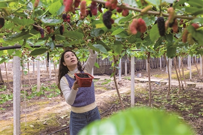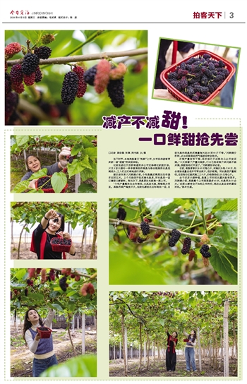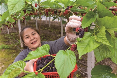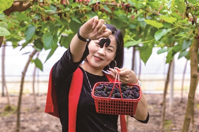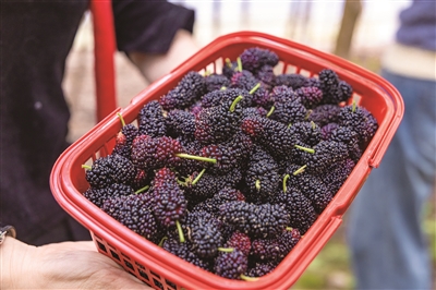 由于采用大棚种植,桑葚上市时间比露天栽培更早。刘颖娜介绍,黑桑整个上市周期最多40天,长桑则为30余天。“后期口感肯定不如刚上市的好,现在正是品尝的最佳时机。”她补充道。